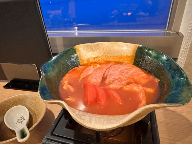 氷見牛の鍋がトマトなのと、ご飯がビリヤニなのが