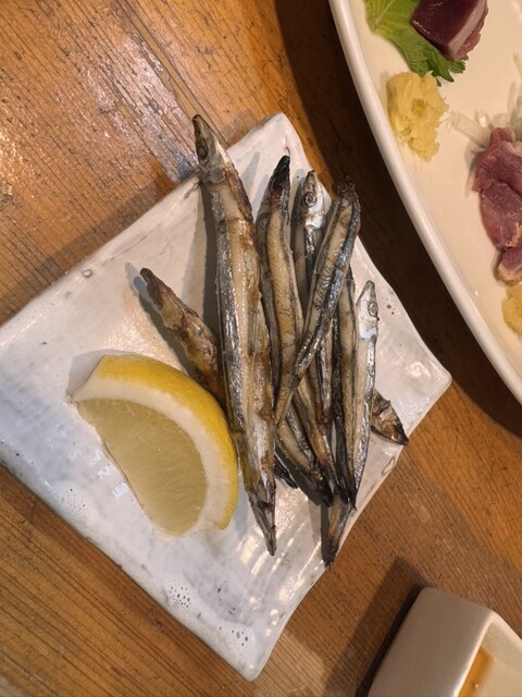 鳥刺し、さつま揚げ、鳥焼き、カツオ、しめのかごうどんどれも美味しいです!!