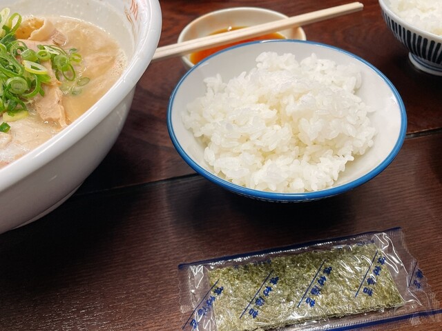 ラーメンはthe豚骨ラーメンといった濃厚なスープで、でも臭みも少なくとても好みの味で美味しかった。