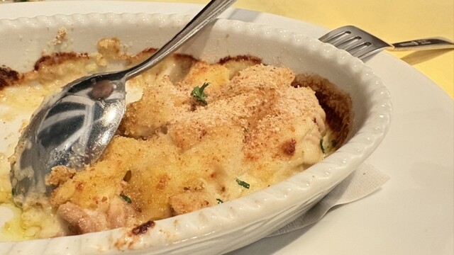 久しぶりにナポリピッツァをいただきに来店。水牛モッツアレラのマルゲリータと魚介パリナーラのハーフ&ハーフを注文。むかしとは違う食感に戸惑いながらも美味しくいただきました。水牛モッツアレラのカプレーゼはシンプルだけど、甘味のあるトマトとチーズが美味しかったです。メカジキのカルパッチョは肉厚で深みのある美味しさに感動。白子とインカの目覚めポテトのグラタンはクリーミーな味わいでした。魚介の旨みがたっぷりのリングイネはもう少し濃い味を期待していたので少し違いを感じました。メインのタリアータは肉の香ばしさとジューシーな美味しさを満喫しました。ご馳走様様でした。