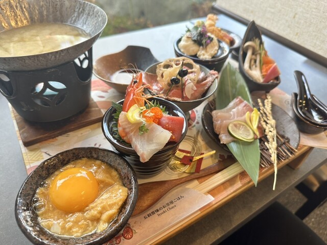 2.3年前は、1ヶ月前でも予約不可のお店だったのが、正月で少し落ち着き、ようやく予約が取れました☺️ここは、四季折々の食材を使って、5種類のミニ丼を楽しむことができるお店。(丼5種といいつつ、鰤のしゃぶしゃぶついてますよ!?)
