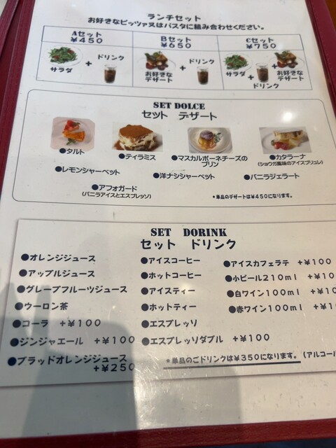 ランチセットは数パターンありますが、今回はピザ、デザート、ドリンクセットを注文。