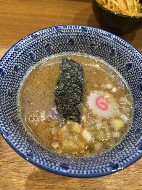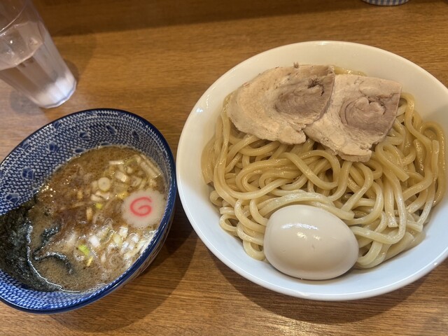 旨味のきいた魚介のスープに、あつあつの麺がよく合います。大盛りと並を注文し、大盛りは特製トッピングでお腹いっぱいに。