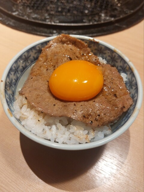 希少部位のシキンボを薄めにカットした一品。卵黄とタレを絡め、ライスボールを包んで食べる。これが絶品。肉の甘みと旨みが強いので、ライスボールも良いですが、肉1枚につきお茶碗一杯食べれます。