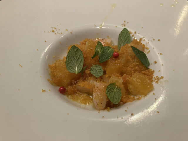 同行者の一皿目 低温調理した牡蠣のトリュフ乗せ