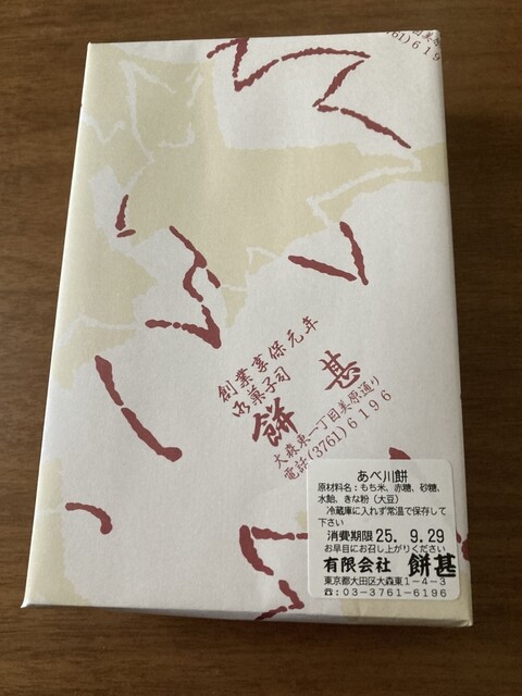 平和島駅享保元年創業の和菓屋さんdeあべ川餅ほか。