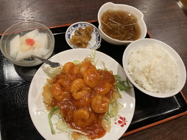 私は牛バラ飯、お連れさんはエビチリがメインのセットにしました。