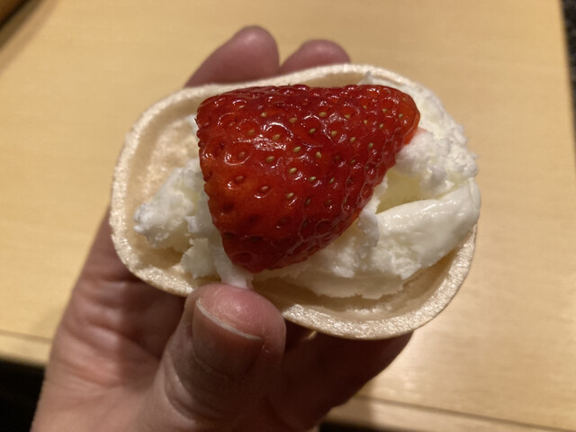 デザートはイチゴが乗ったアイスクリームで
