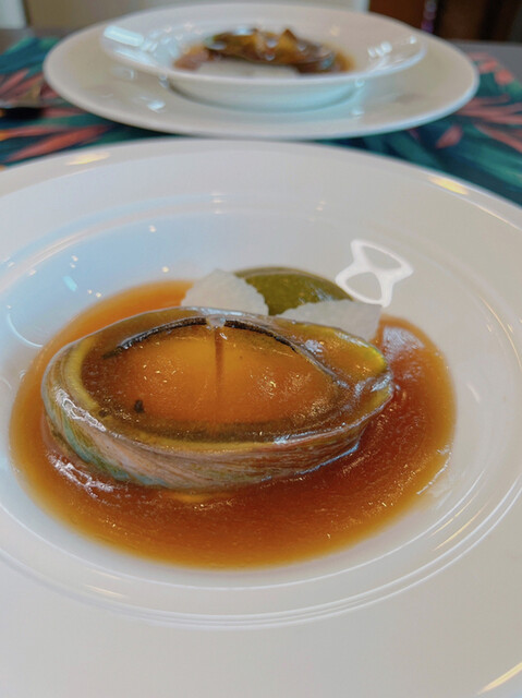 鮑は肉厚があり、きめ細やかで上品。鮑の肝ソースは磯の香りが鮮烈で深い味わい。
