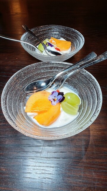 シャインマスカットの杏仁豆腐はミルキーな香りが広がり、優しく繊細でコースの〆に相応しい✨