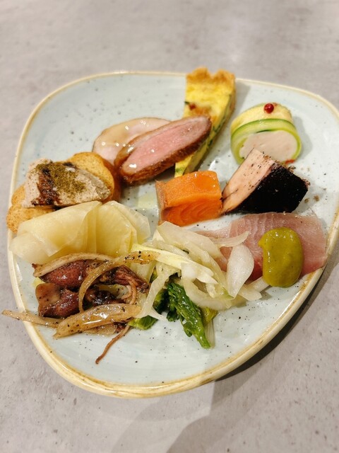 うなぎの肝ペースト、キッシュ、煮凝り、イカ飯、カルパッチョ、マリネ、えびムースのズッキーニ巻き、パテなど…