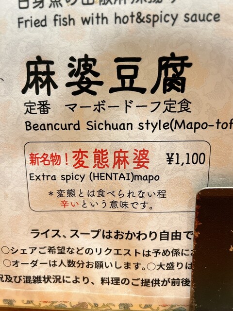 変態とは食べれないほど辛い!変態麻婆豆腐