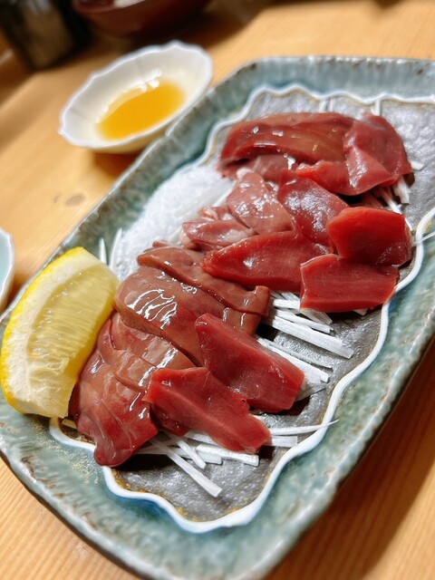 レバ刺しは、とろっとろタイプではなくコリコリ食感が残るタイプ。