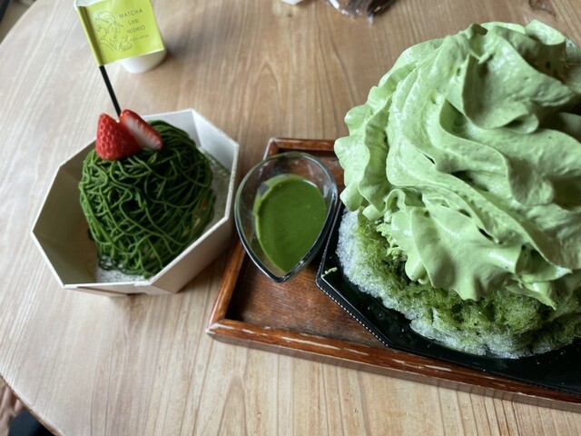 抹茶エスプーマかき氷濃厚抹茶ショコラソースがけ、西尾抹茶モンブラン