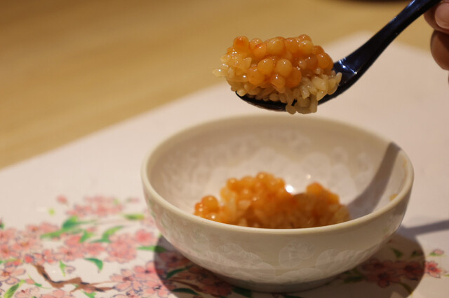 └ 口に入れた瞬間、脳天に突き抜けるような濃厚な旨味が広がるうには、まさに問答無用の美味しさ。新鮮で上質なうにであることが一口でわかります。