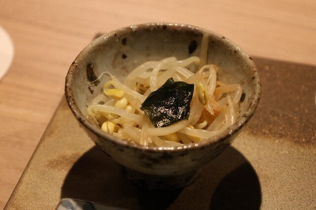 └ 鳴門わかめ入りの豆もやしナムルは、瑞々しくシャキシャキとした食感が印象的。カクテキ、白菜、ニラのキムチは、甘めのカクテキと後引く辛さのキムチのバランスが絶妙で、これだけでお酒が進む美味しさです。後続のお肉との相性も抜群で、箸休めにも最適でした!