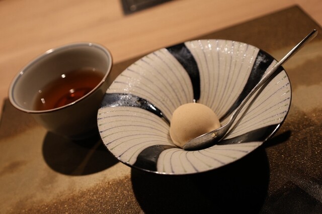 └ 京都のきな粉と黒蜜を使った和風ジェラートは、上品な甘さで食後にぴったり!マスカットフレーバーの紅茶と共に、優雅なデザートタイムを過ごしました。