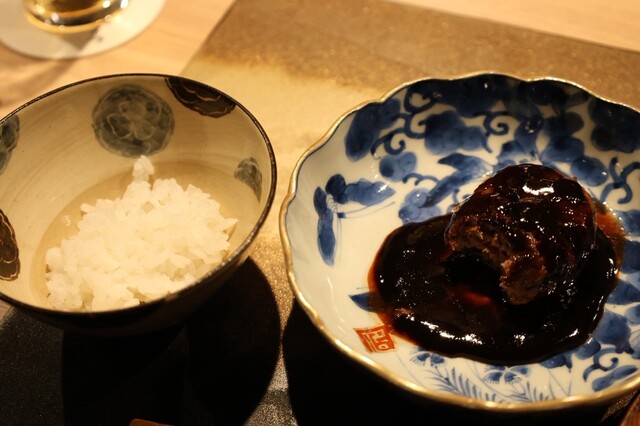 └ 鳥取県産 純血但馬血統 万葉牛を使用。パン粉などを一切使わず、シンプルに肉のみで形成されたハンバーグは、ふっくらつやつや。八丁味噌と卵黄を使った特製ソースが、ハンバーグの旨味を一層引き立て、添えられた白ごはんとの相性も抜群で、これだけのために何度もお店を訪れたくなるほどの美味しさです!