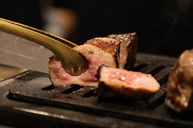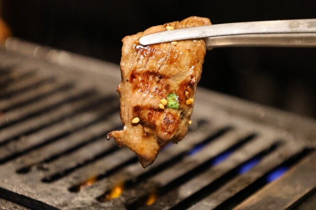 └ 馬刺しにも使われる新鮮なカルビをサッと焼き、甘みと旨みを凝縮。