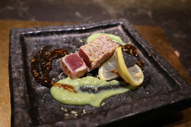 鮪赤身の炙り アヴォカドのピュレと共に