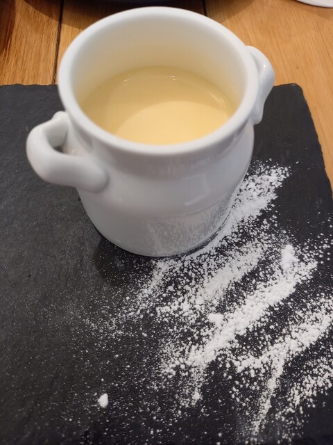 デザートはチーズを食べ終わって落ち着いたタイミングで「デザートをお持ちしてよろしいですか?」と聞かれ、最後に届きました。固めでシンプルながらカスタードの味が濃く美味しいプリンでした。また行きたいです!