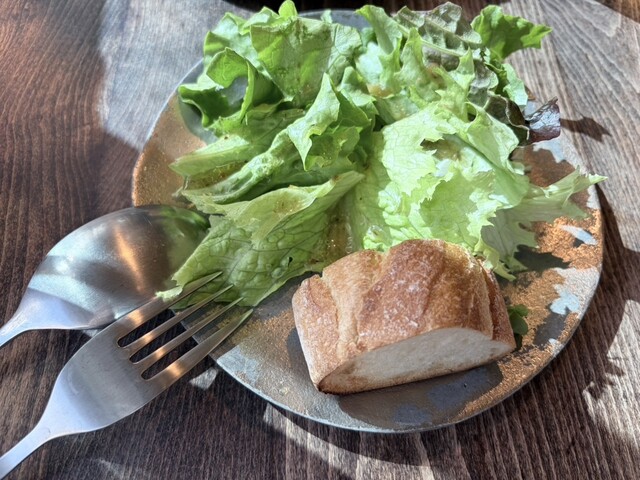 パスタセットは1,100円でサラダ・バケット・アイスティー付きと、この立地ではかなり良心的。