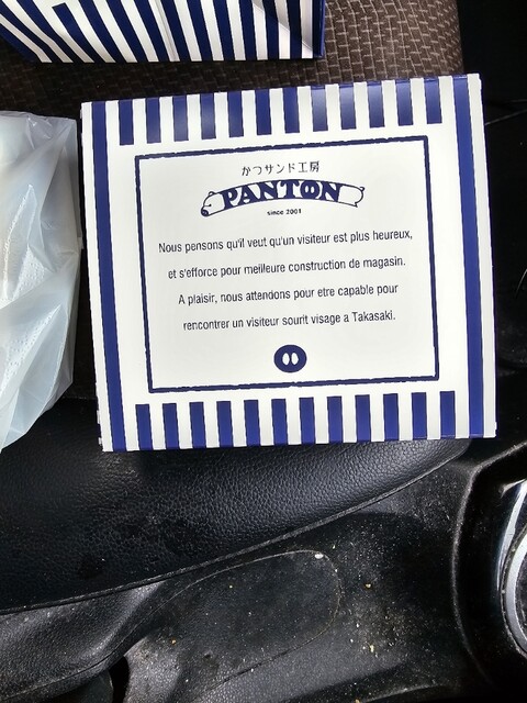 今日は、とてもラッキーでした。3年ぶり位かな?テレビで取り上げられて、一時予約も、すぐに埋まってしまう、高崎の美味しいかつサンド工房。パントンさん。10時で連絡した時に、一部品切れはあったものの、今回購入した、特選ロースかつサンドも、至福のたまごサンドが、当日予約で買えるなんて、小躍りしました(笑)