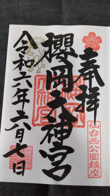 チカスエはマサムネからのご城印を胸にしまい、『伊達政宗公騎馬像』前にて記念撮影、広瀬川を渡り、『櫻岡大神宮』を参拝。