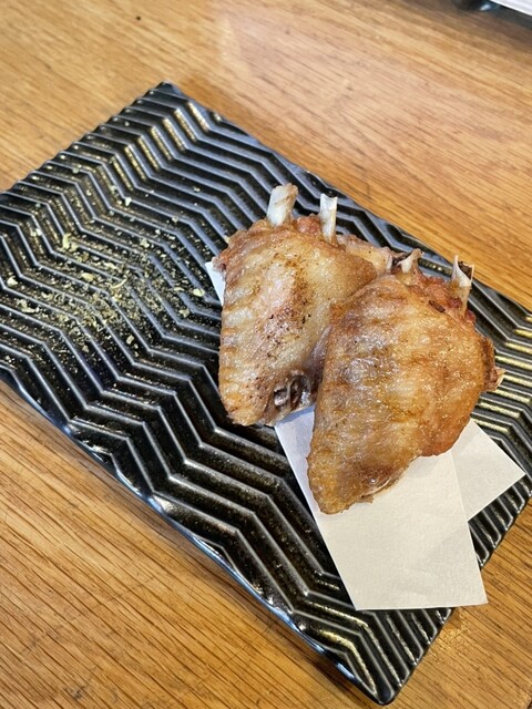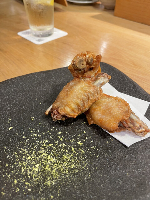 手羽一夜干し素揚げも毎度注文メニュー。パリッとジューシーで山椒を付けて食べるあのピリッと感が最高。
