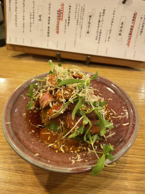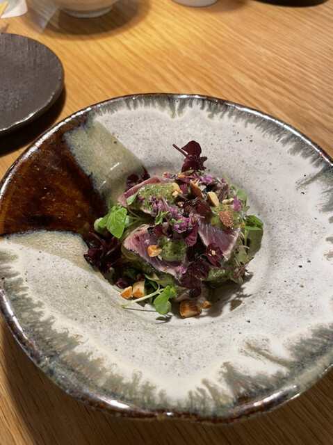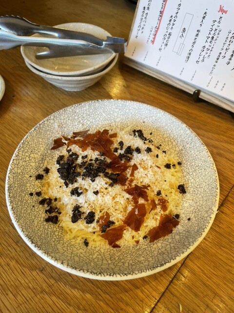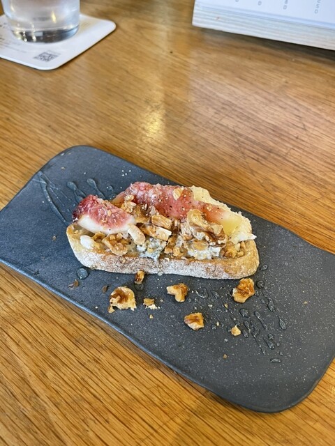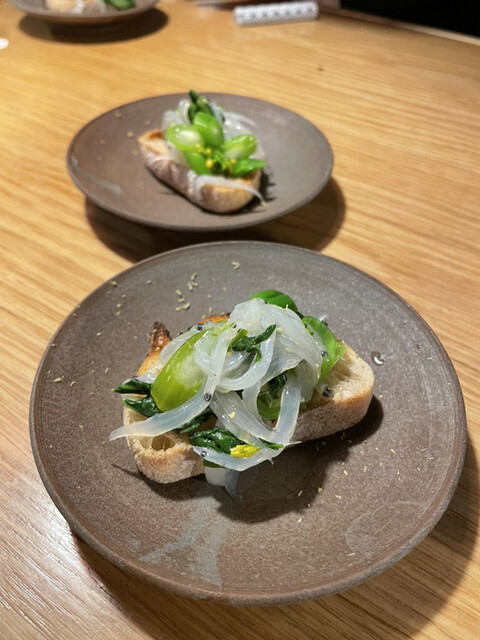 おつまみブルスケッタは度々内容が変わって毎度注文してるメニュー。シメサバと焦し味噌チーズで食べたことがない組み合わせだったんだけど、めっちゃ美味しかった。