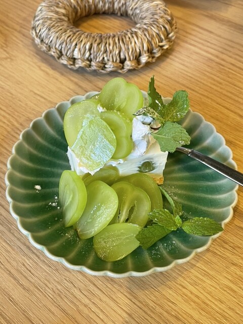 爽やかなシャインマスカットに甘酸っぱいレアチーズケーキ。