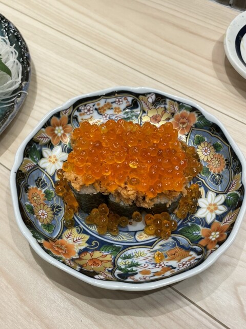 お刺身盛り合わせは、2人前からの注文なんだけどマグロ、サーモン、タコ、カンパチ、うにの5点盛りで豪華。どれも分厚くて食べ応えあり。