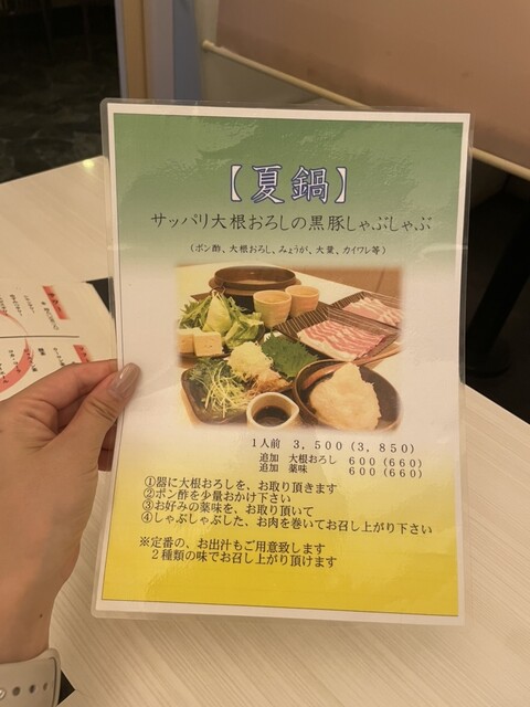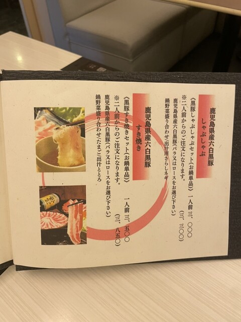以前、中洲店に訪問した際、食べて美味しさに感動したので今回も鹿児島県産六白黒豚しゃぶしゃぶを注文。ロースとバラの両方が食べたかったので追加で注文しました♪