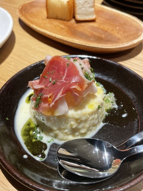 順番逆になったけどお通しのクリームチーズ豆腐からとっても美味しかった。蜂蜜がかかっていてバケットとも相性ぴったり。余ったバケットはレアカツのソースやパスタに合わせてもいいね~!