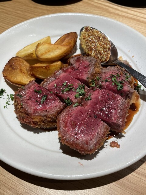 料理でまず驚いたのが「和牛モモ肉のレアカツ」。1499円で食べれること!うん、普通にコスパ良すぎる。