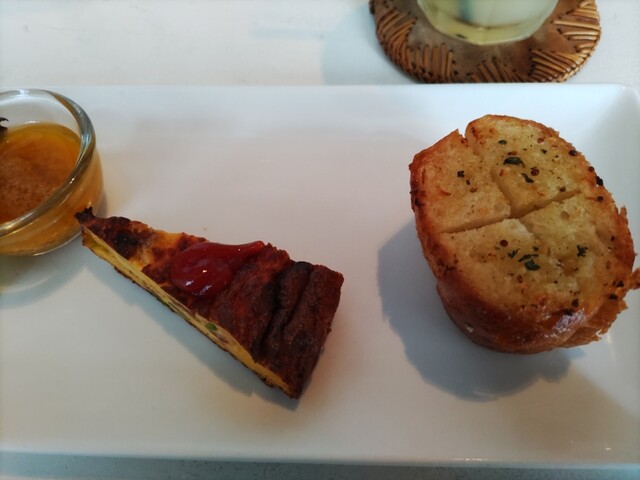 ガーリックトーストもいつも通り、外カリカリで、オイルが良い塩梅で染みてて美味しいです♪