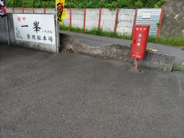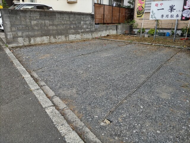 お店の並び、2〜3軒先に砂利の駐車場(小さめ)があって、道挟んで向かいにアスファルトで整備された駐車場がありました。