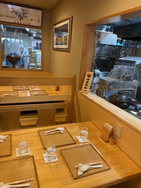 奥のテーブル席へ通され、お盆に箸が置かれた本当に和食割烹のような設え。厨房の様子もガラス越しに見えるのですが、ラーメン店というよりは和食料理店です。