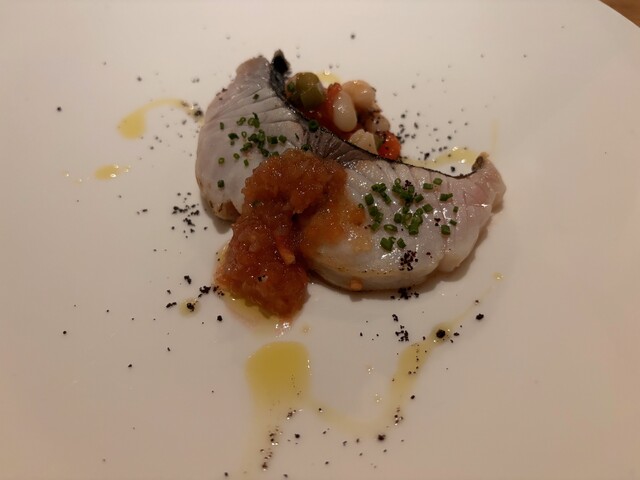 ミネストローネへのオレンジワイン(イタリアのオレンジワインはレアだけど美味)の合わせ、サクラマスと一緒にいただいたダブルッツォも見事でした。ワイン自体も美味しいし、合わせも素敵でした。