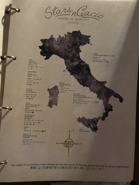 お酒好きの友人らとの集いの場は『tars'n Cacio KYOTO(スターズ アンド カチョ キョウト)』さん。四条河原町から徒歩5分。