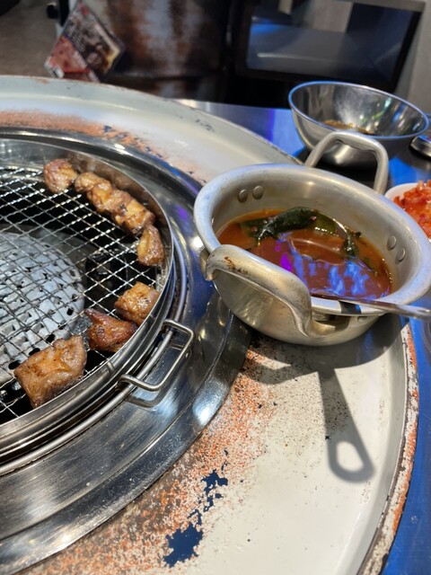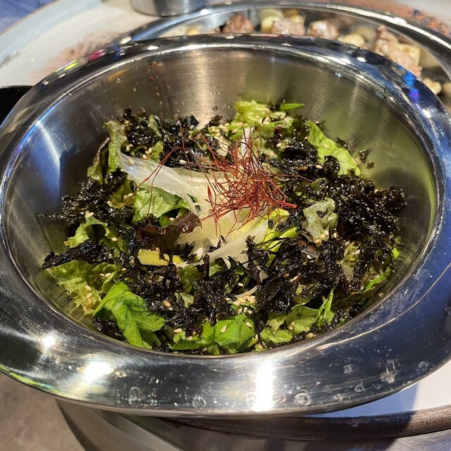 サンチュや白菜キムチ、天日塩、サムジャン、スライス玉ねぎの特製つけダレなどお肉のお供も充実しているので味変で楽しめます。