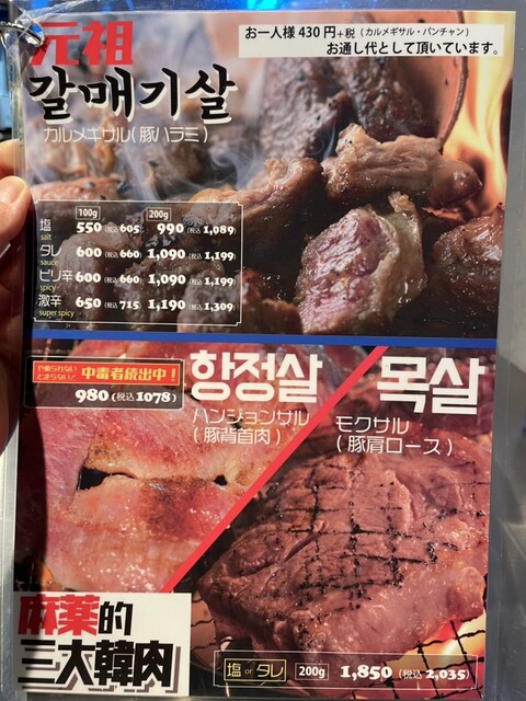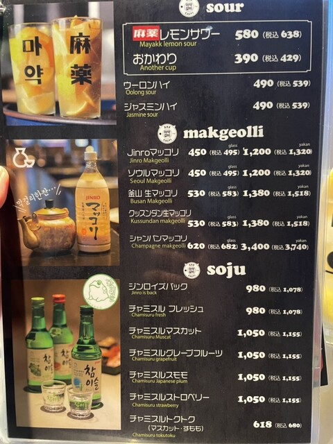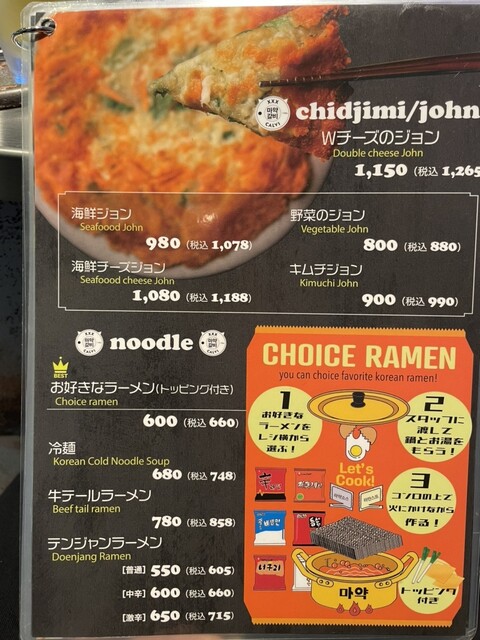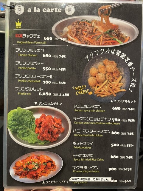 店内はK-POPの映像が流れ、壁面のネオンも手伝って韓国色を醸し出しています。