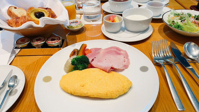 宿泊にセットの朝食。洋食3種と水簾製の和食、パーコー麺が選べます。緑と池に囲まれた和テイストの雰囲気の落ち着いた作りです。首相官邸も見えます。スタッフのサービスはピカイチ。流石です。アレルギー対応への気配りや給仕方法もスマートでとても良かったです。私はアメリカンブレックファーストでオムレツでしたが、生搾りのジュース、ヨーグルト、ブレッド盛り合わせ、ジャム、エシレのバターも全部良かったです。前日食べ過ぎないようにしないといけないですね。