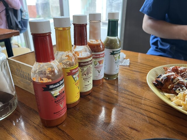 テーブルの上にハバネロソースがいくつかあって味変におすすめだそうです