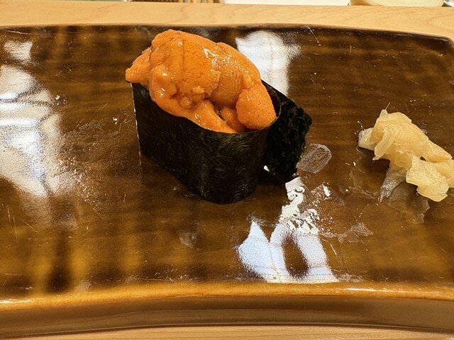 お任せの中で出てきた、マグロの握りと、ウニとイクラがご飯に乗ったものが美味しすぎて、マグロの握りウニの軍艦は追加で頼みました。
