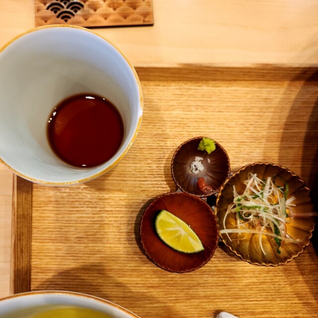 塩、梅鰹、山葵、ネギに大葉と茗荷を合わせた薬味、すだちなどの脇役でさえも全て一級品。