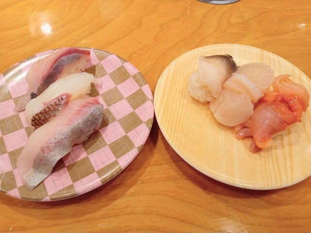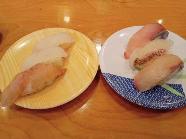 先ずは3貫握り6種注文。地魚3貫がサメガレイ、スズキ、笛吹鯛とガラッと変わりました。味の特色はちょっと薄いけど食べ放題では少し珍しい。鮮魚の真鯛は前回に続き湯霜で。活貝のほっきはやや大きくなってちょっと食べ甲斐有り。まぐろ3貫の中トロパートはピンク色で脂乗り薄くいつもと違う感じです。いつも薄いとろメカジキが厚めは嬉し。甘海老小さい。また生だこ忘れた