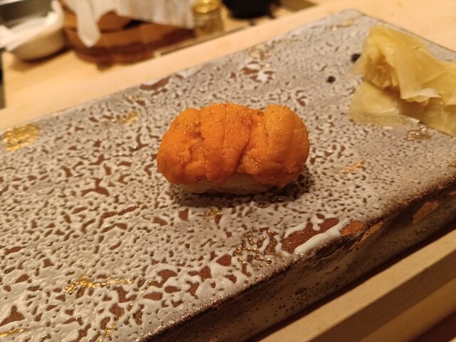 マグロ、ウニ、キャビア、金粉の豪華な組み合わせ。言うまでもなく美味しいです…!