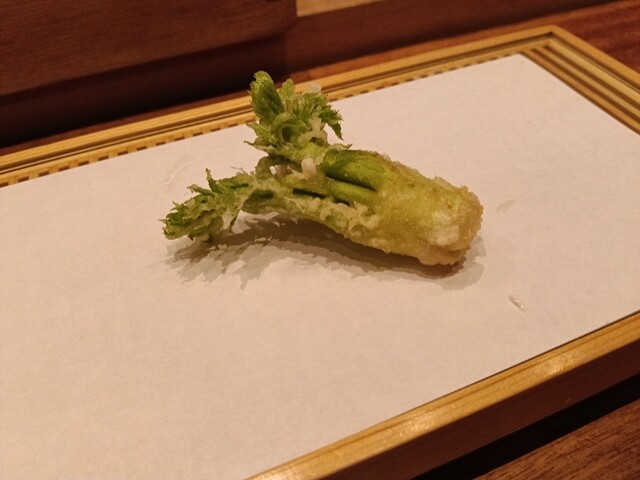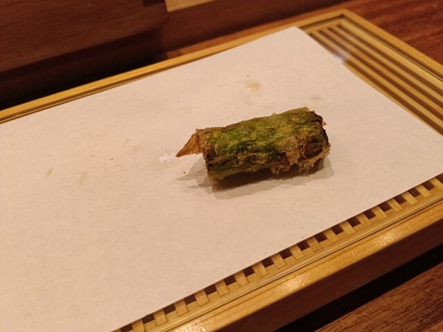 少し野性味のあるアスパラの天婦羅。穂先はしっかりした食感も楽しめます。