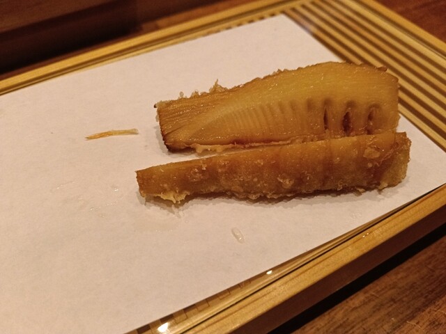 お醤油の香りが衣に閉じ込められており、筍の食感+衣の食感の2つを楽しめてこれが美味しい・・。